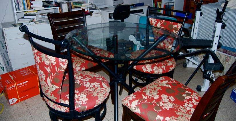 And lastly, (this was actually last week, but who’s keeping track?), we reupholstered the chairs for our dining room table.  Results?