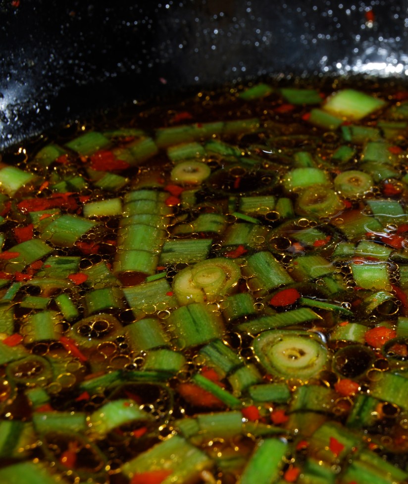 • 1 tblsp each chopped green onions and pickled ginger – again, this is the recommended dosage, and I would say do like 1/4 cup or 1/2 a cup of each.  They make the sauce hearty, crunchy, pickly and delicious.