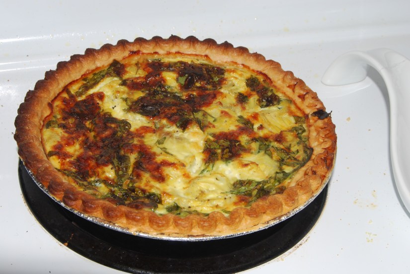 Says I: “What?  I made a quiche.  Right now, it’s making itself, in the oven, but in terms of my responsibilities, it’s done.  I made it.”  Says he: “Okay.  You’re right.”  I sigh happily.  Return to my book.