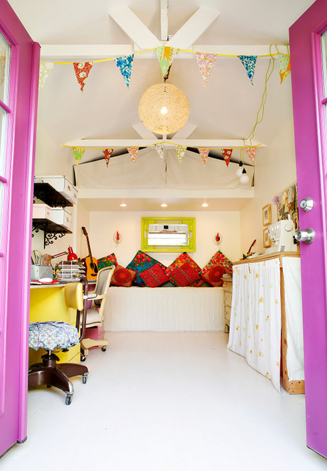 [This woman, Emily Henson, might just be my design hero. If you were a kid, and your mom made you this room, WOULDN’T YOU JUST WANT TO HUG HER ALL THE TIME? You can see more of her sweet house on Design*Sponge. Here’s a picture of the interior of her garage/home office, just because I love ya.]