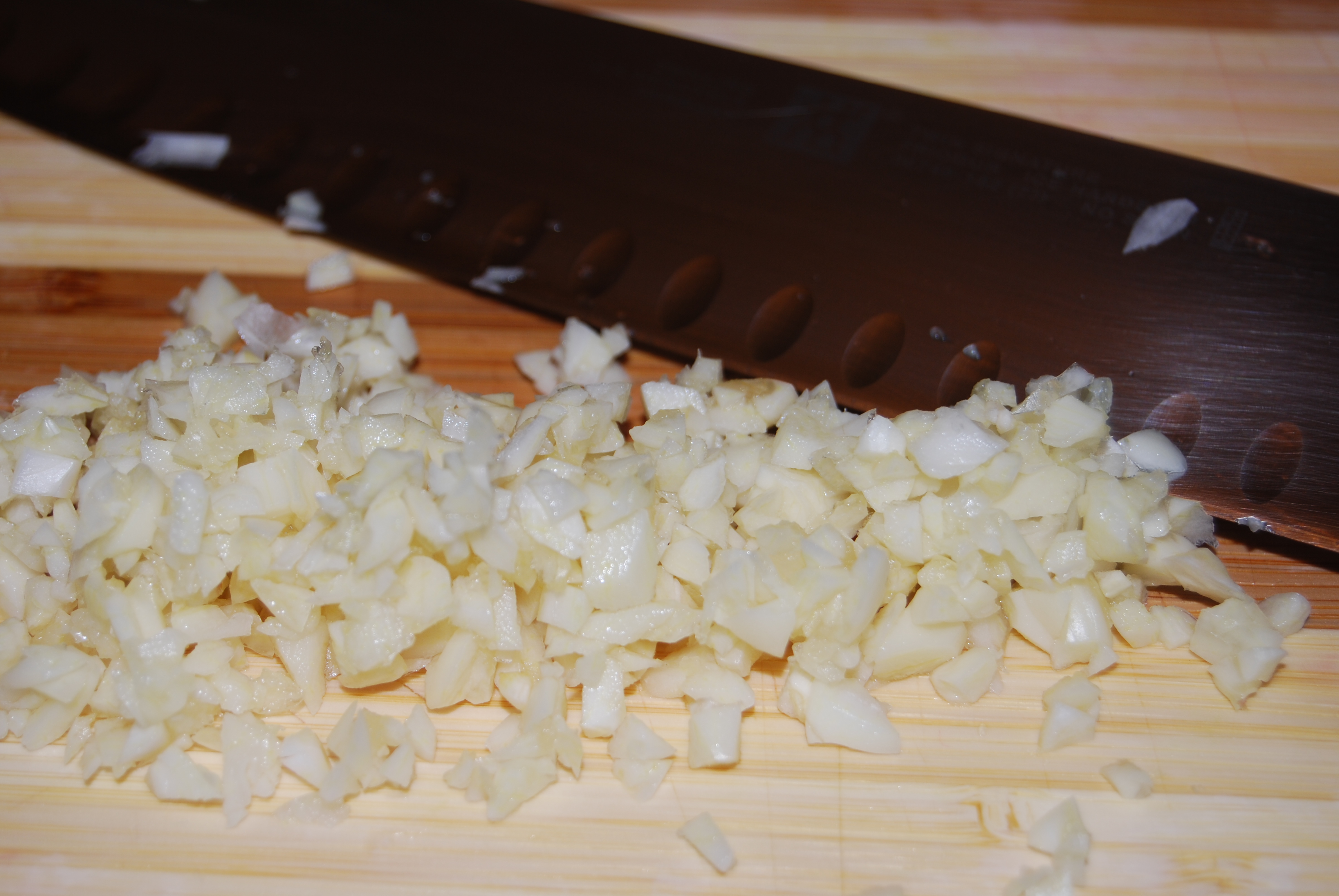 The combination of micro-planed ginger and chopped garlic is like an international flavor festival.  In this pan.