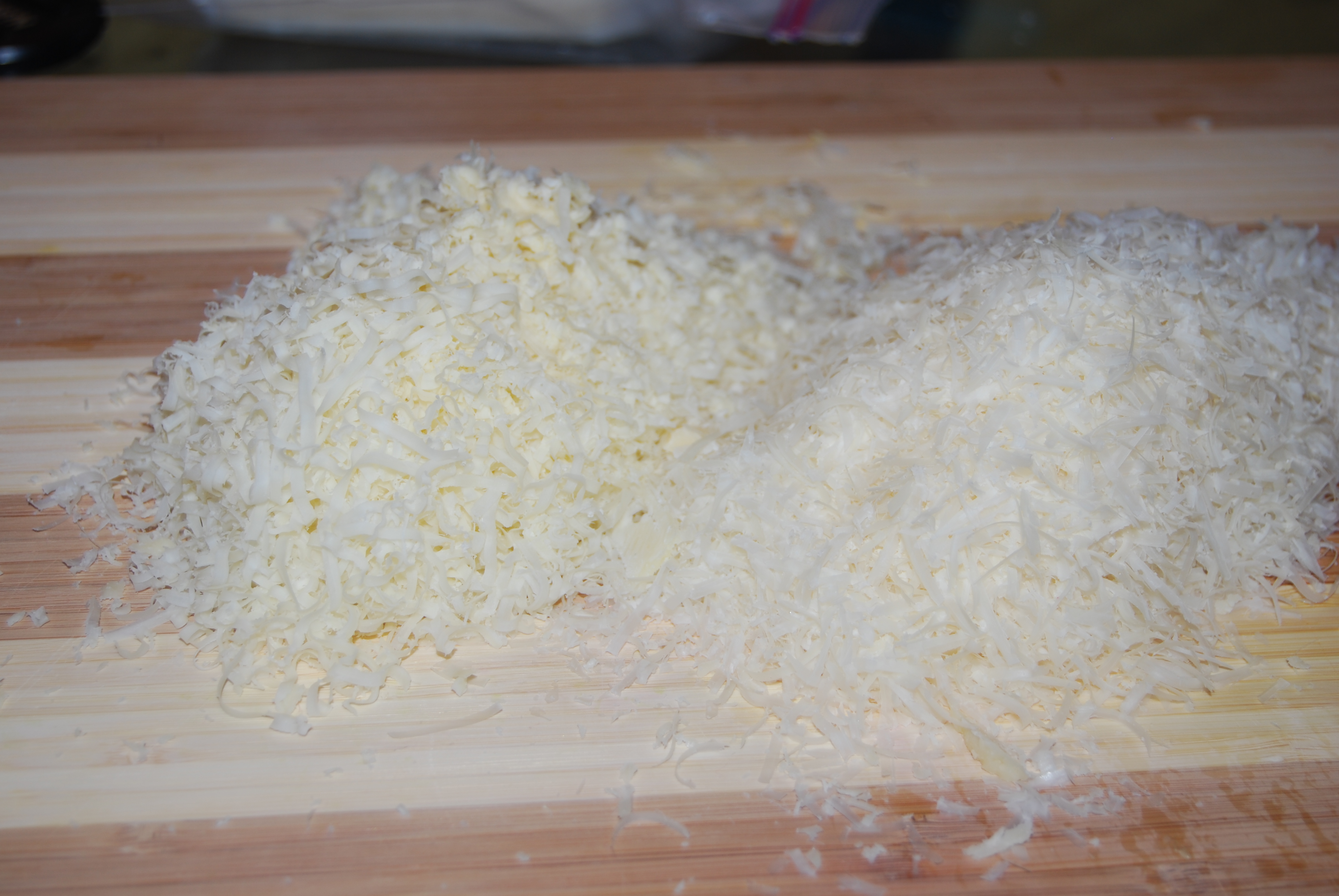 Take your two, oh-so-fluffy piles of cheese, and throw them in.  Also, throw in the mushrooms, and the butter.  Stir!  Taste!