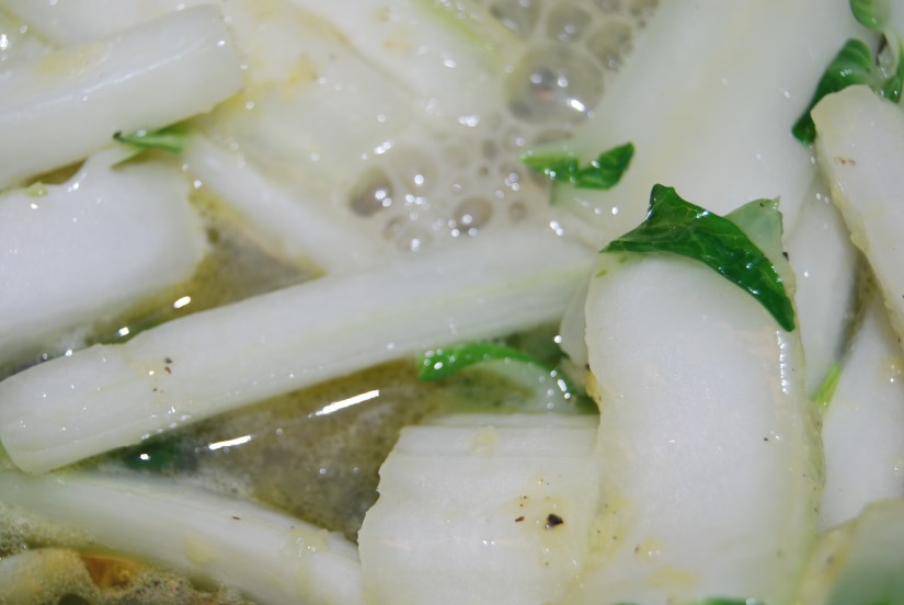 On this particular night, we made a side dish of bok choy with ginger, garlic, and lime.  While you’re gradually adding broth to your risotto, and being ever so patient and mindful, here is a photo shoot of the side dish: