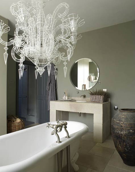 [When I see this picture I just think CHANDELIER CHANDELIER CHANDELIER oh wow look at that cool stone sink.]