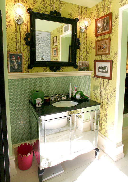 This house, which was featured in one of Apartment Therapy’s house tours six months ago, had a toilet in the hallway. Not a fan, but I AM a fan of this mirrored vanity. Mmmm.]