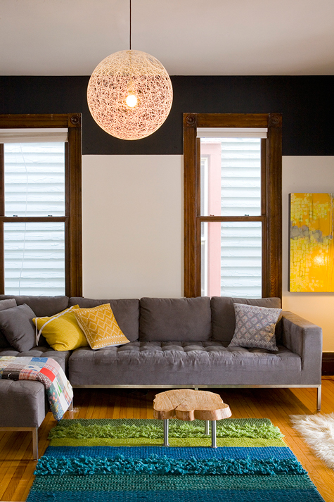 There’s an excellent chance that my dream house would be filled with color, but also with functional-yet-neutral furniture pieces to balance that out.  It would not, however, have a tree stump as a coffee table. How much do you want to kick that thing??  (PS: Yes, in the wider shot of this same room, there are two shell Eames chairs hanging out with some sheepskin rugs.  I am nothing if not predictable. But…fun, too.)