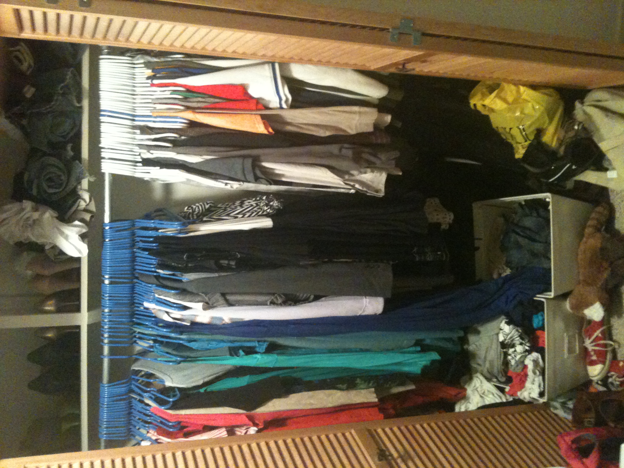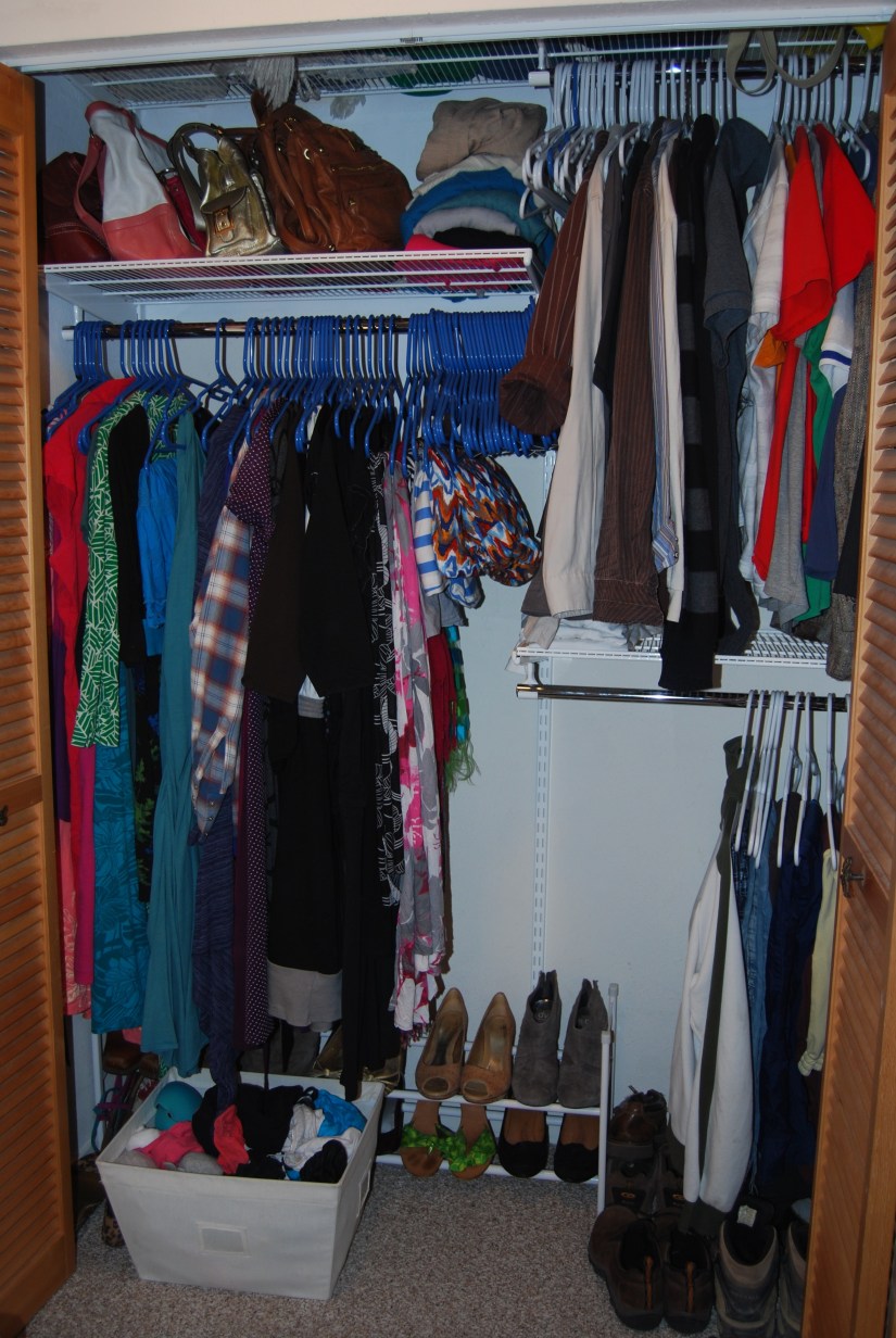 Our things are breathing a loud “Aaaaaahhhhh” of relief in their new home, comfortable with plenty of space and firmly separated by gender.  Because, come on.  My heels just don’t want to associate with My Man’s hiking boots.  They have an image to maintain, okay?