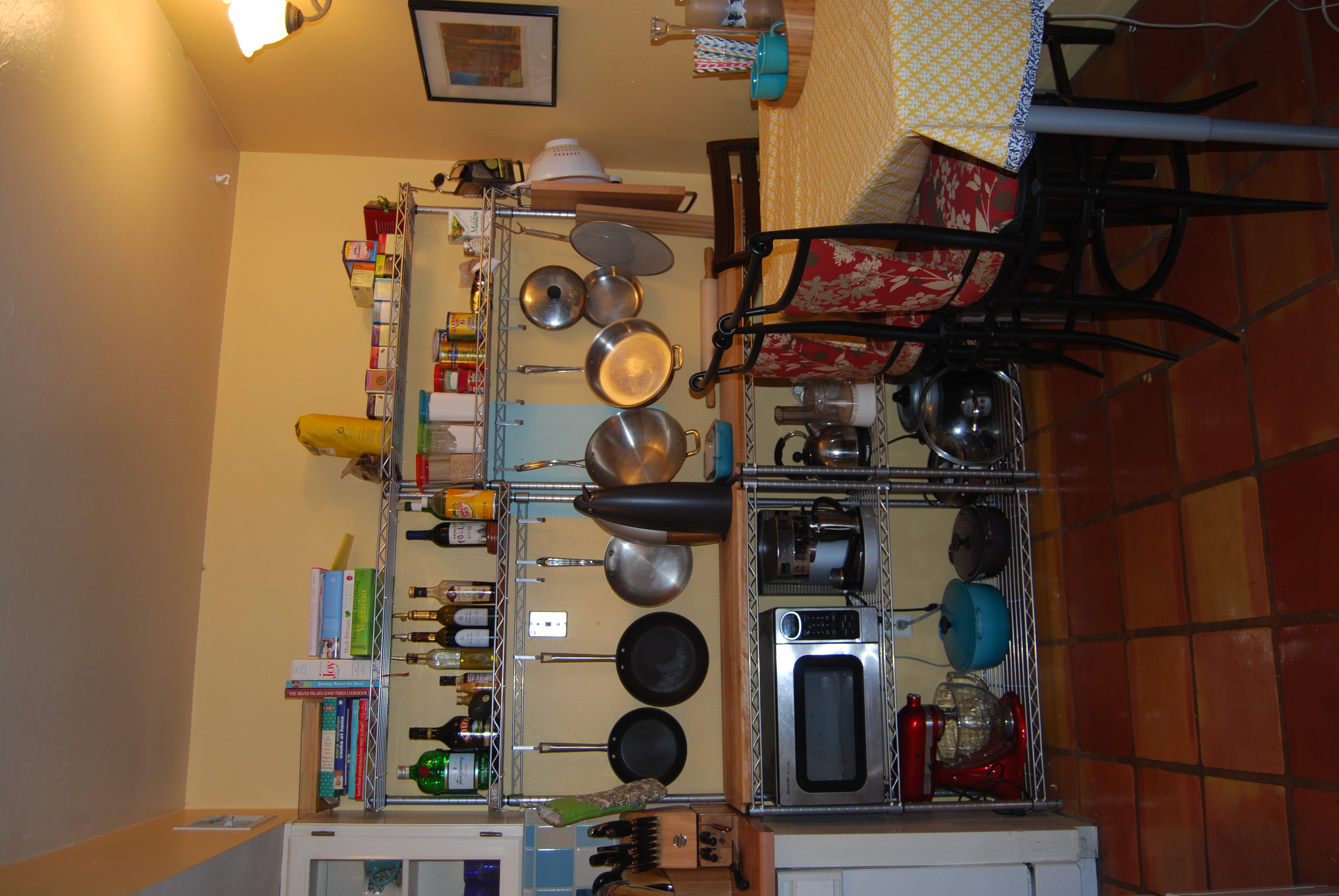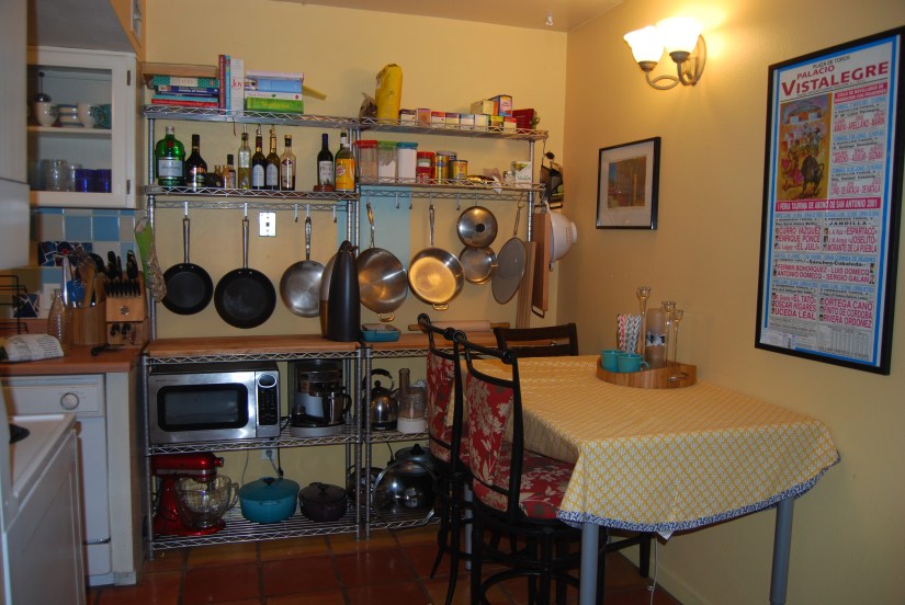 For all of this, what I definitely can say is this: changes like these make a HUGE difference in our day-to-day life.  Since moving the kitchen around, we have successfully cooked with three people in the kitchen at the same time, and it was totally comfortable and even fun – every journey over to the new rack to pluck off one of our easy-to-find items is just a joy.  As a bonus, I feel like I can breathe again.  So that’s a relief.