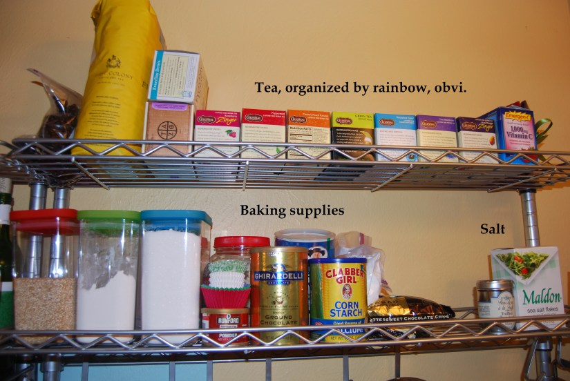 But how cute are the baking supplies?  If I actually ever baked anything, this would be totally awesome.  For now, it’s aesthetic as well as functional.  Also, that variety of salt represents approximately 2/5 of the salt brands that we actually have in this house.  I am completely insane.
