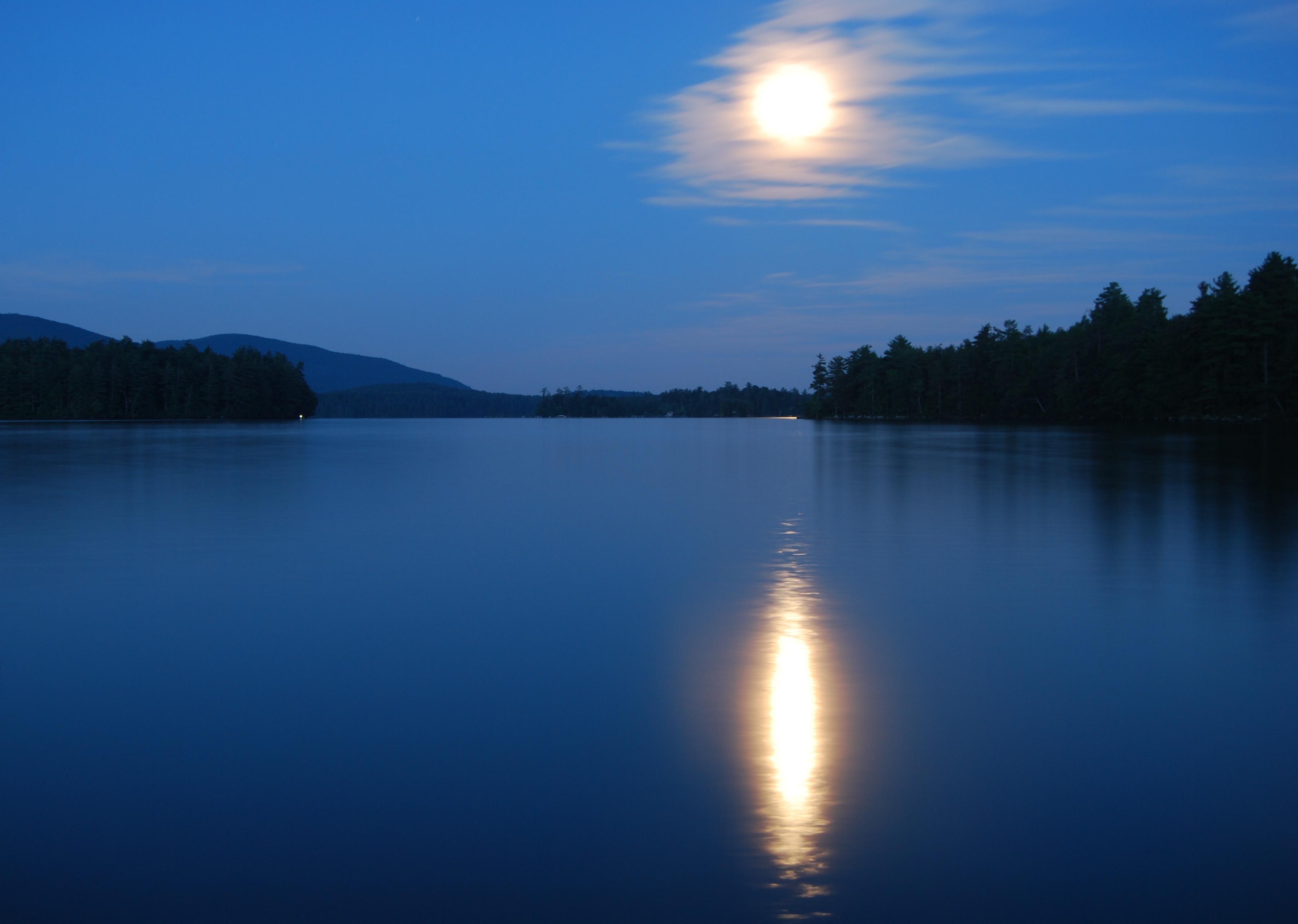 [Late-night boat activity under a full moon – we sat by the fire pit and watched them roll by.]
