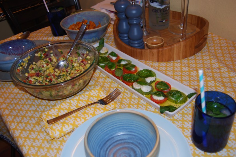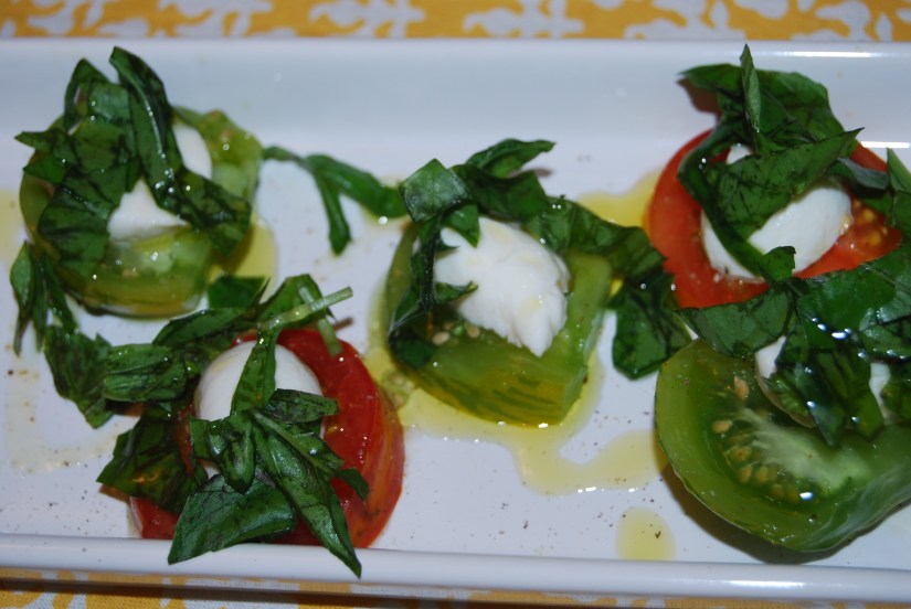 Heirloom tomato caprese salad – ’tis the season, people! Get yourself to the Farmer’s Market. Or Whole Foods. Or the regular store, I suppose (although when it comes to bougie vegetable items like heirloom tomatoes, I’m probably more likely to choose the bougie market locations).