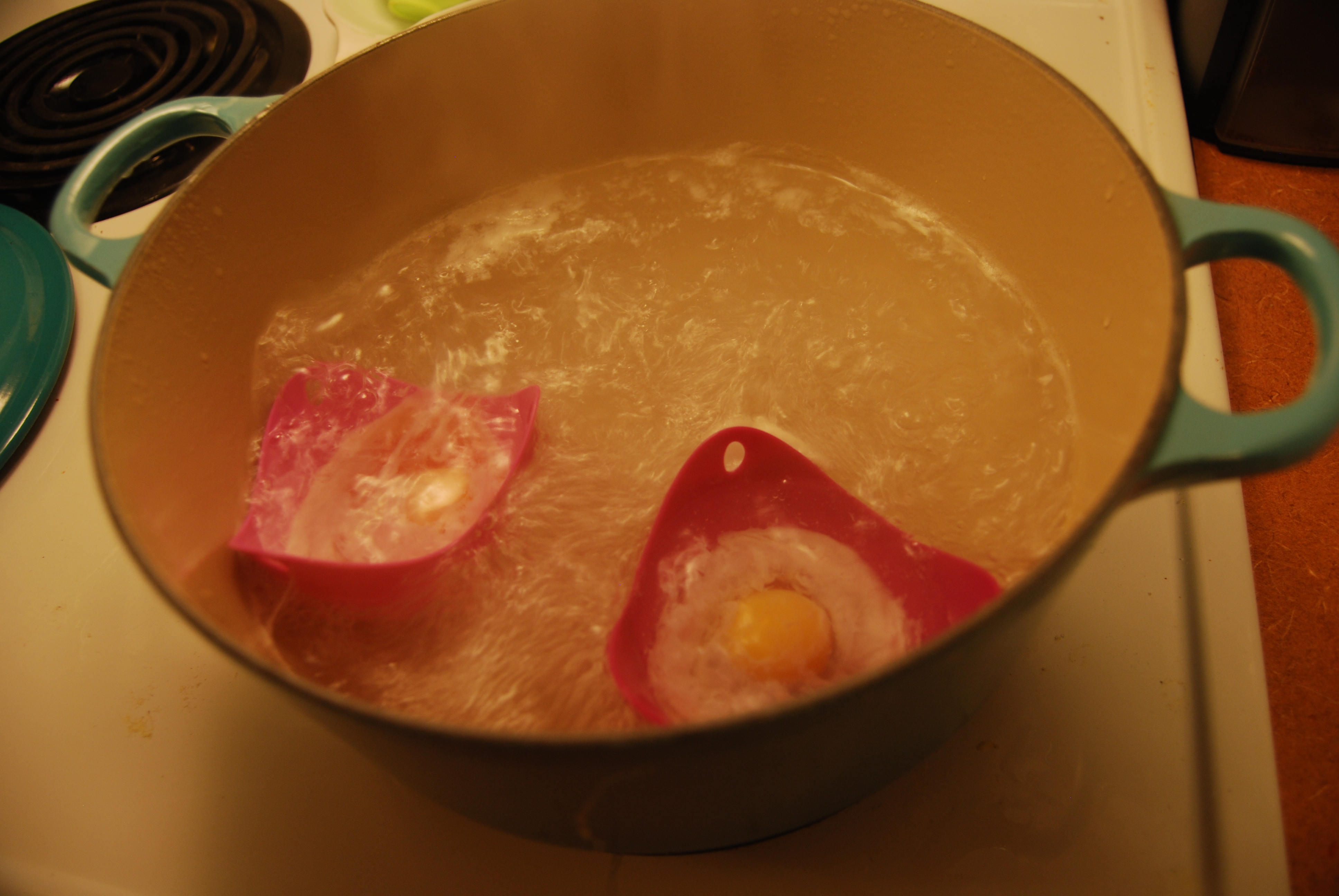 I swear this is not an advertisement. If poached eggs are as much of a mystery to you guys as they are to me, then these things will CHANGE YOUR LIFE. In a truly amazeballs and also revolutionary manner. You just boil like an inch or two of water in a pan with a lid, put the pods in, crack the eggs, put the lid on, wait five minutes, and TA-FREAKING-DA! The most gorgeous and perfect poached eggs. Ever. You are your own chef, so do it now.