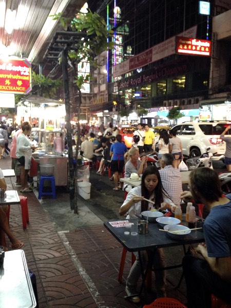 [hubs and our tour guide, Jenny, eating Hong Kong noodles with crispy duck in Bangkok’s huge Chinatown]