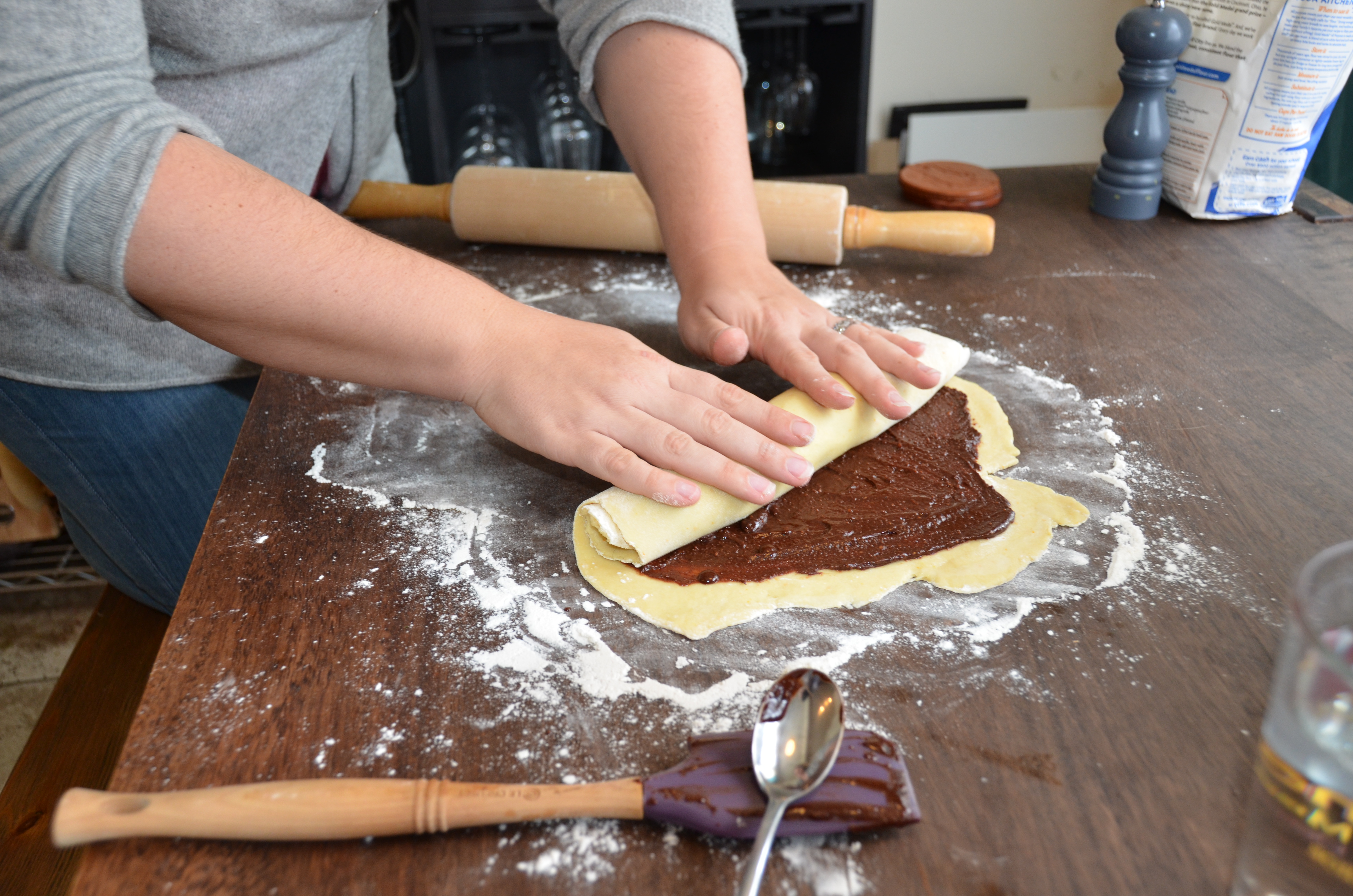 That’s what babka looks like before it’s rolled…and twisted….and baked…and cut. Like a big, delicious, chocolate dough pancake. Mmmmmmm.