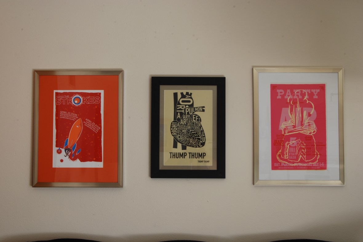 [New wall hangings to take up some blank space, finally. Prints all care of various wonderful family members – this is your wall!]